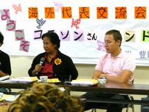 夕方から開催された交流会では、フィリピンでの米軍の軍事訓練による被害の問題や、ロシアの核施設の事故による被害の問題などが海外代表から報告されました。また、豊田地域での平和運動の取り組みが報告され、8月9日の長崎原爆の日に取り組んだ署名活動などに海外代表から共感の声があがりました。海外代表に、新婦人の女性達から手作りの布草履などがプレゼントされ、交流とともに、連帯を強める交流会となりました。