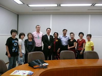さらに、豊田市を表敬訪問し、加藤副市長と懇談し、世界大会で提起された新しい署名「核兵器のない世界を」をすすめました。