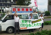9月5日、愛知県各地で「安倍政権は退陣を!全県いっせい宣伝活動」が取り組まれ、日本共産党豊田市委員会は、大村・根本両市議を先頭に市内6カ所で街頭宣伝を行いました。